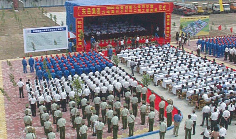6月29日,集團(tuán)組織了聲勢(shì)浩大的創(chuàng)建20周年慶典活動(dòng)。中央部委及省市縣黨政領(lǐng)導(dǎo),50多家國外著名企業(yè)、300家國內(nèi)著名企業(yè)和高校負(fù)責(zé)人1000余人齊聚東岳,與東岳干部員工共慶節(jié)日。慶祝儀式上,舉行了東岳研究院落成剪彩儀式。在集團(tuán)創(chuàng)建20周年文藝晚會(huì)上,閻維文、蔡國慶等藝術(shù)家為全體干部員工和當(dāng)?shù)馗刹咳罕姭I(xiàn)上了一場(chǎng)豐盛的文化大餐。